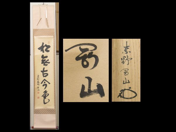 - 【心庵】掛軸 大徳寺派 紫野 松長剛山 紙本「松無古今色」一行書/肉筆 共箱 真作 B066