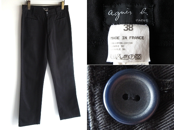 > 希少 フランス製 90sビンテージ agnes b. アニエスベー フロントポケット コットンツイルパンツ 38 黒 ブラック アーカイブ VINTAGE