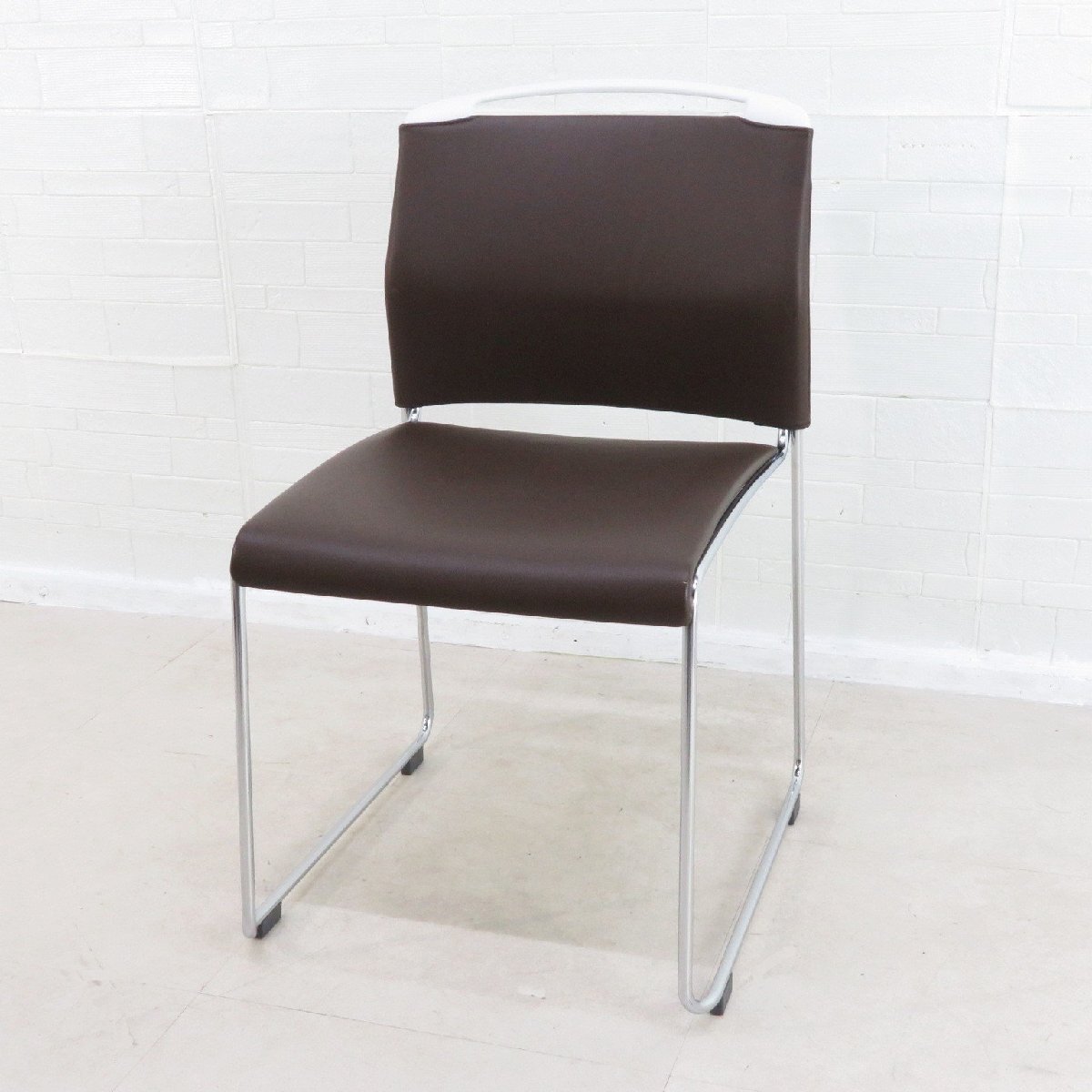 > ITOKI イトーキ U-1 KLU-110DF-Z9W9K1 スタックチェア ブラウン ミーティングチェア 把手形状 多目的 布張り EG15808 中古オフィス家具