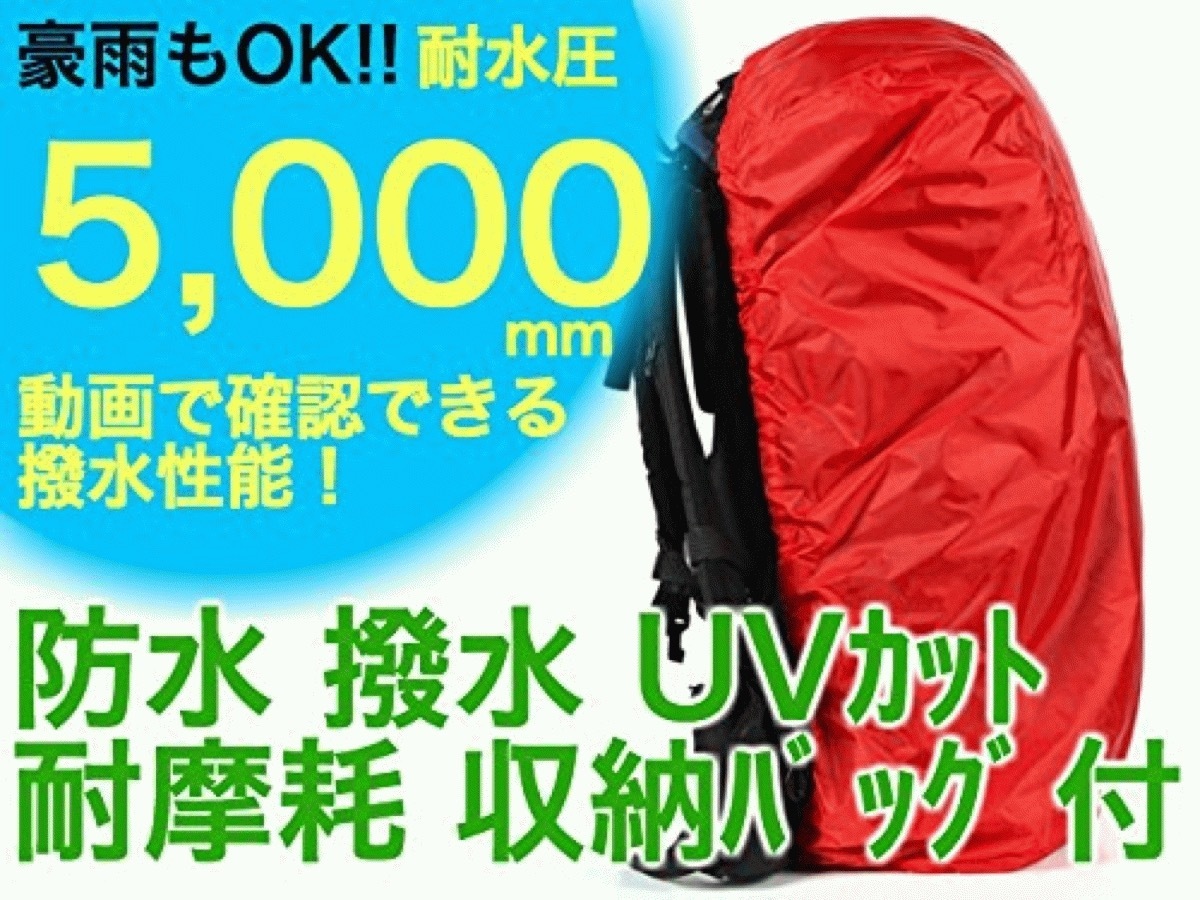 - リュック ザックカバー 大型 50Lから90L レッド 防水性能傘の20倍 防水 耐水圧5000mm バックパック カバー カッパ ウミネコ