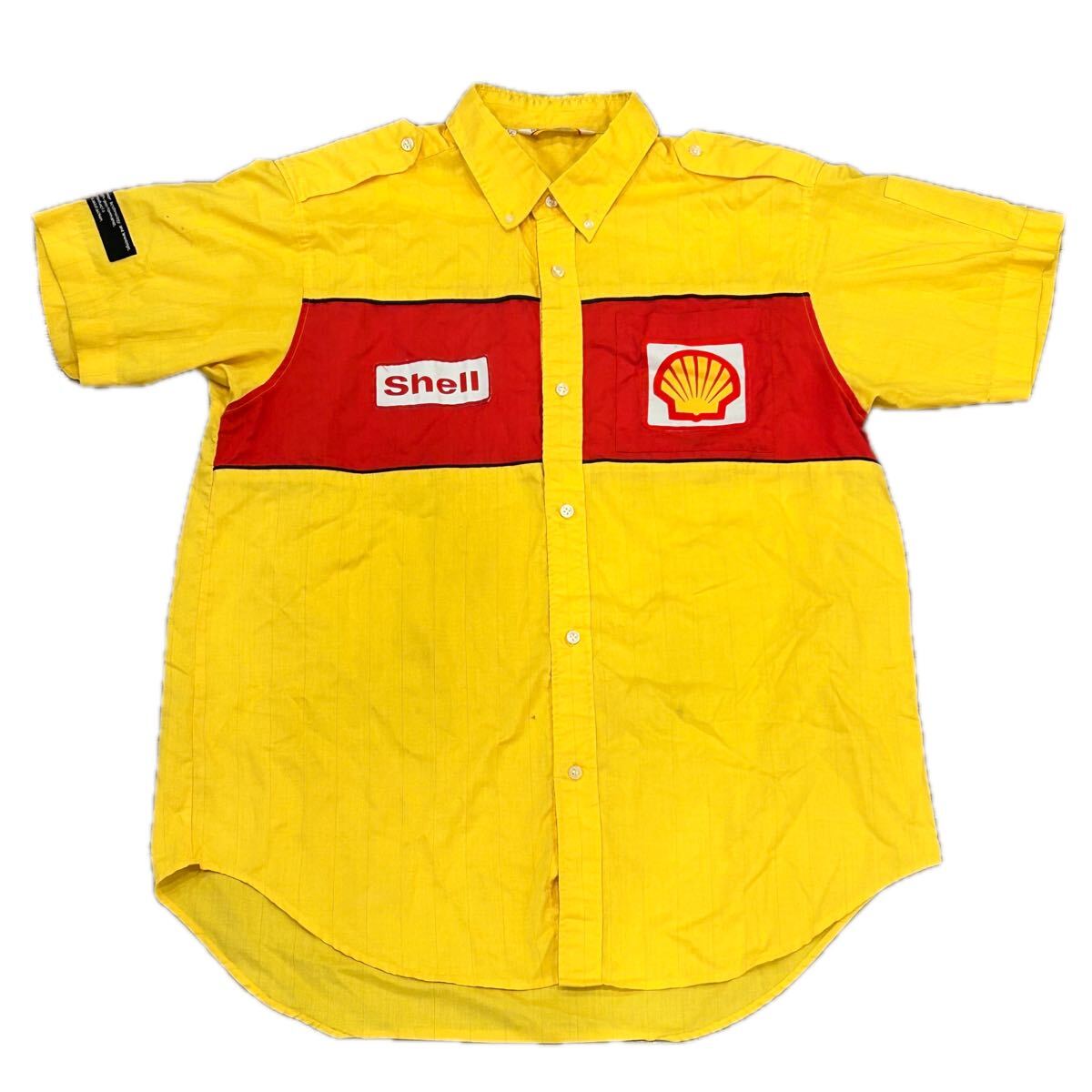 - SHELL 昭和シェル石油 公式サービスシャツ LLサイズ ビッグロゴ イエロー ワッペン ワークウェア ユニフォーム 古着 車 モータースポーツ