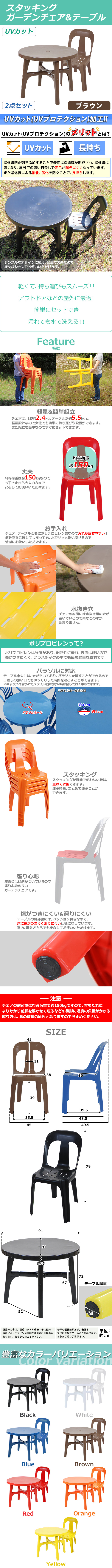 - 送料無料 ガーデンチェア ガーデンテーブル 2点セット UVカット ブラウン ガーデンセット ポリプロピレン製 ガーデンテーブル&チェアー1脚