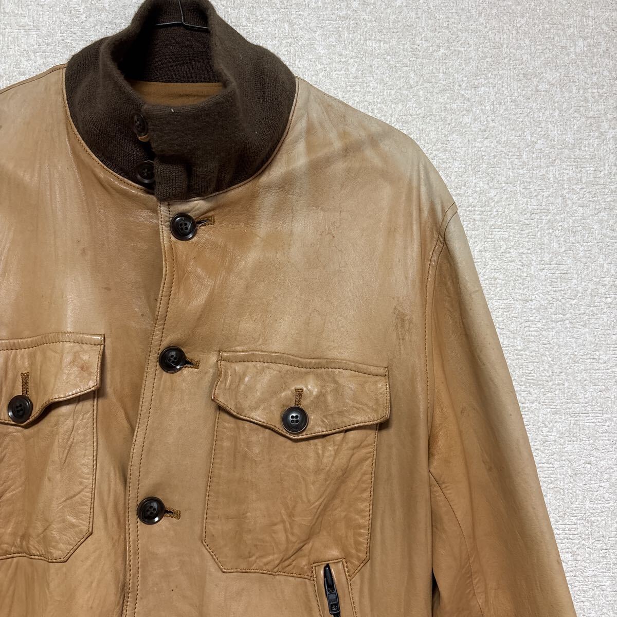 - 【岡山デニムブランド】 OMNIGODオムニゴッド 羊革 レザージャケット メンズ古着 ビンテージ サイズ4 メンズMサイズ相当