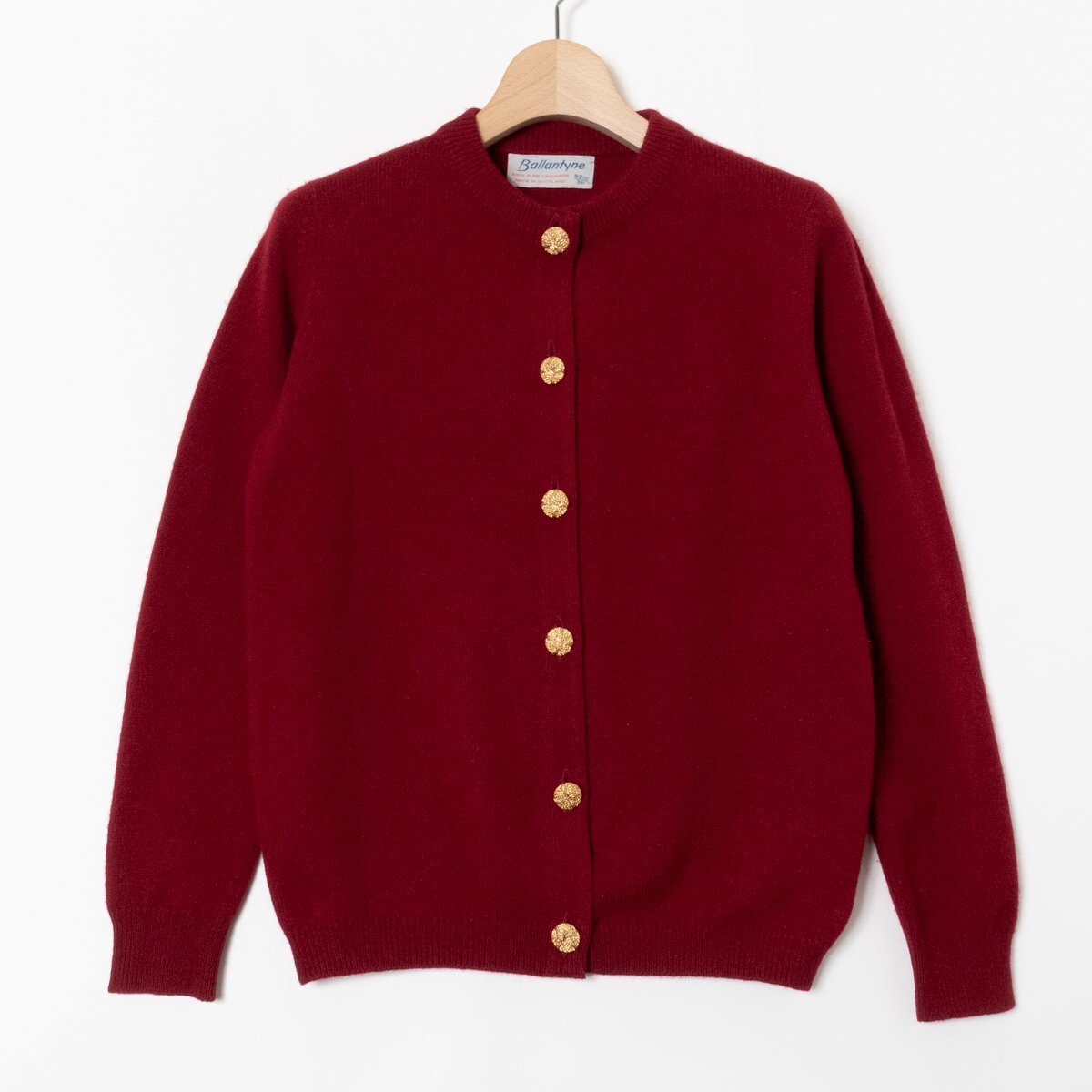 > 【1円スタート】BALLANTYNE バランタイン CASHMERE カーディガン 羽織り トップス 36 レッド カシミヤ100% スコットランド製 レディース