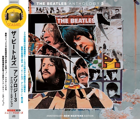 *20世紀最大の音楽遺産ビートルズの原点から解散までの歴史を貴重な音源で辿る『ザ・ビートルズ・アンソロジー』集大成。最新リミックスや新発掘音源を追加し全曲ニュー・マスターによる新編集増補改訂版30周年アニバーサリー・エディションTHE BEATLES / ANTHOLOGY 3 : ANNIVERSARY EDITIONEXPANDED AND REVISED 2025 NEW COMPILATION[3CD] GOLDIES GSB2503CD1/2/3■新発掘や初登場音源含む全曲ニュー・マスターによる30周年アニバーサリー・エディション■オリジナル未収録のアウトテイクやデモ、TVショウやライブに至るまで未発表音源を多数追加した全83トラックの新編集増補改訂版■「ナウ・アンド・ゼン」「グロウ・オールド・ウィズ・ミー」の最新リミックスはじめオリジナル音源からのステレオ・デミックスや新規リミックスによる最新アップグレード音源で収録ザ・ビートルズの原点から解散までの歴史を総括した”アンソロジー”プロジェクトは長年の構想を経て1995年に貴重音源によるアルバム3部作はじめ書籍やTV放送含む映像作品まで多岐に渡るプロジェクトとして発表され世界中のビートルズ・ファンの注目を集めた。3部作のアルバムにはデビュー以前の歴史的記録から解散に至るまでを時系列に辿ったものでこれまで未発表だったスタジオ・アウトテイクスやTV、コンサートのライブ等の貴重音源が公開されプロジェクトの目玉としてジョン・レノンが残した音源を元にした新曲「フリー・アズ・ア・バード」「リアル・ラブ」の2曲も発表されている。3部作最後の新曲「ナウ・アンド・ゼン」は当時未発表に終わったものの2023年になって27年振りに発表。”ビートルズ最後の新曲”として話題となったのは記憶に新しいところ。ビートルズの未発表曲に関してはかつてアルバム『セッションズ』として発売予定があったもののお蔵入りとなり80年代には『ウルトラ・レア・トラックス』や『アンサーパスト・マスターズ』等が非公式にリリースされていただけにこの”アンソロジー”プロジェクトによるアルバム3部作と映像作品は未発表音源や映像の集大成として当時は注目を集めた。しかし”アンソロジー”は厳選された内容であり未収録となったアビイ・ロード・スタジオに残された膨大な未発表音源や世界各国で記録されたライブ音源や映像はいまだに未公開のものもあり新たな発掘も含め今後も様々なリリースが期待されている。今回の『アンソロジー3』30周年アニバーサリー・エディションは1996年リリースのオリジナル未収録のアウトテイクやデモ、TVショウやライブに至るまで未発表音源を多数追加した全83トラックの新編集増補改訂版でオリジナルに比べ音質向上はもちろんこれまで以上のノーカット編集やAI編集によるモノラルからリアル・ステレオに変換されたデミックスも採用し新発掘や初登場音源も含む全曲ニュー・マスターによる新たな音源ソースを元に全面的にアップデイト・リニューアルされた内容となっている。『アンソロジー3』では1968年ホワイト・アルバム・セッションから始まり69年1月のゲット・バック・セッションさらに最後のレコーディング・アルバム『アビイ・ロード』そして95年ポール、ジョージ、リンゴ3人による再結成が実現したセッションおよびバーチャル再結成として今だに未発表の「グロウ・オールド・ウィズ・ミー」と当初収録が見送られ2023年遂に陽の目を見た「ナウ・アンド・ゼン」までを収録。ディスク1はオリジナル同様ホワイト・アルバム関連音源から大幅に内容拡大して収録。アコースティックによる”イーシャー・デモ”は2018年デラックス・エディションで全曲収録されたがここではマルチトラックからの新たなリミックス音源で収録されている。またオリジナル未収録のセッション音源はじめデヴィッド・フロストTVスタジオ・ライブ音源やロックンロール・サーカスからも収録。さらに”ゲット・バック・セッション”や『アビイ・ロード』関連音源もこれまでとは異なる最新ステレオ・デミックスで収録されている他、「グッドバイ」や「ヒア・カムズ・ザ・サン」等オリジナル未収録のトラックも新たに追加収録されている。そしてアンソロジー・プロジェクトとして後に映像公開されたポール、ジョージ、リンゴ3人による再結成セッションさらに今も未発表の「グロウ・オールド・ウィズ・ミー」と最後の新曲とされる「ナウ・アンド・ゼン」は最終バージョンとは異なるジョンのサビが含まれた未発表のコンプリート・バージョンで収録。いずれもジョンのボーカルが一段とリアルにクリーンアップされ演奏自体もクオリティ・アップした最新リミックスで収録。新たな感動を呼び起こすベスト・リミックスとして注目のニュー・バージョンとなっている。Abbey Road Studio, London, UK 22 July 1968 (stereo) 2. HAPPINESS IS A WARM GUN (demo)Demo Recording at Kinfauns, Esher, UK 28 May 1968 (stereo) 3. HELTER SKELTER (take 2)Abbey Road Studio, London, UK 18 July1968 (stereo) 4. MEAN MR. MUSTARD (demo)Demo Recording at Kinfauns, Esher,