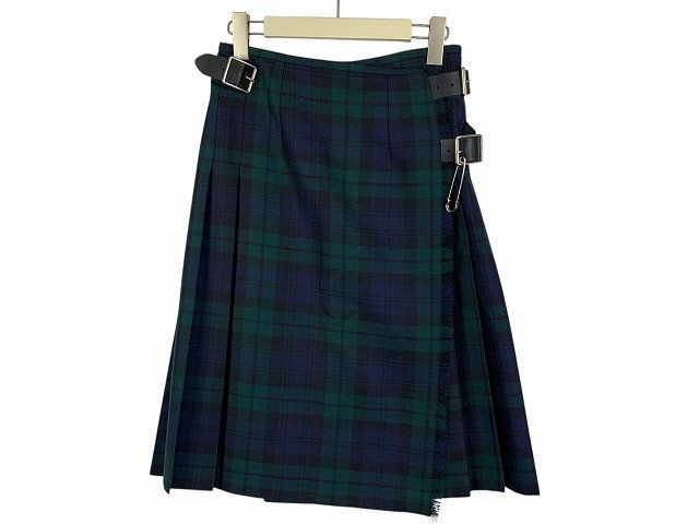 - O’NEIL OF DUBLIN/オニールオブダブリン プリーツラップスカート チェック 巻きスカート レディース サイズ : 8 ネイビー/グリーン