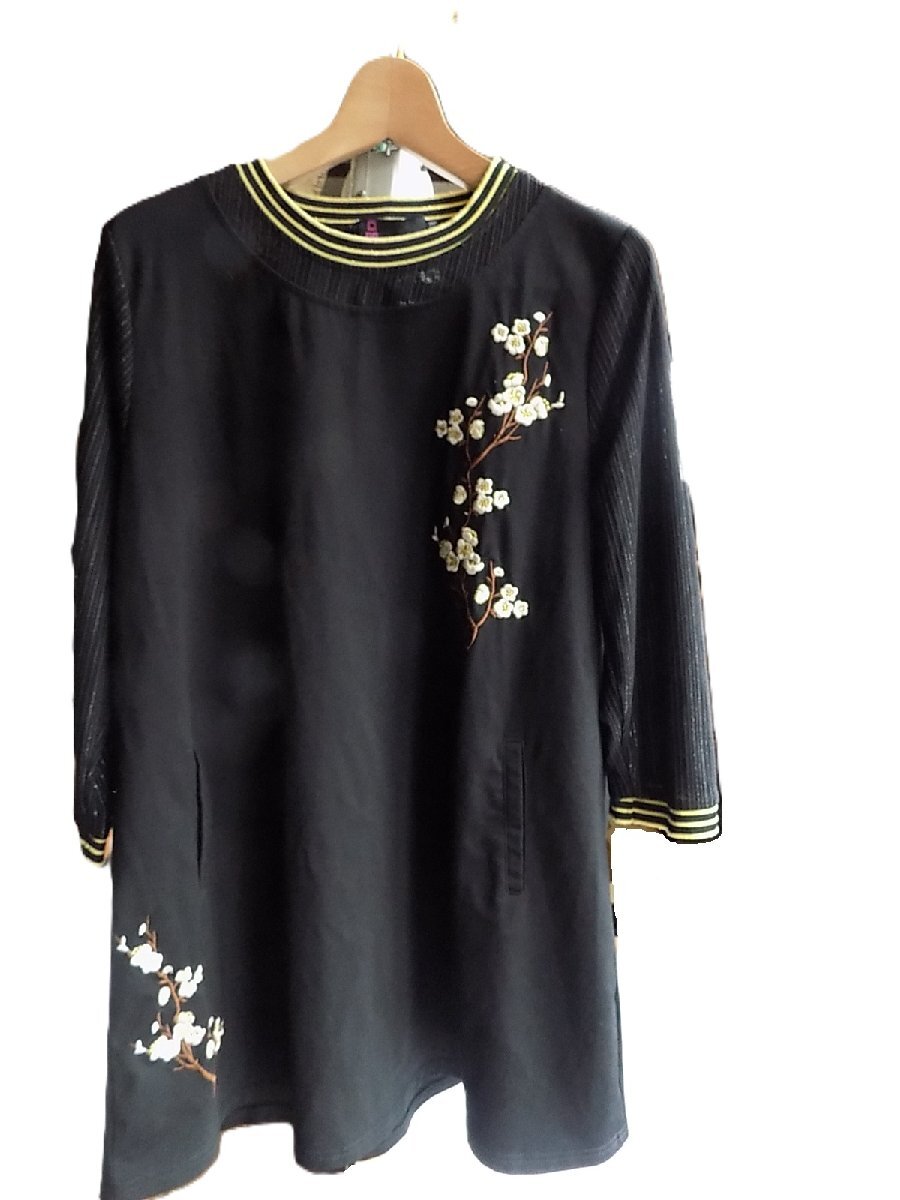 - kou kou kou 桜刺しゅう長袖ワンピース/mo-FH-18-6203/お洒落/高級/上質/モダン/軽やか/着心地/個性的/女性らしい/華やかさ/ディテール