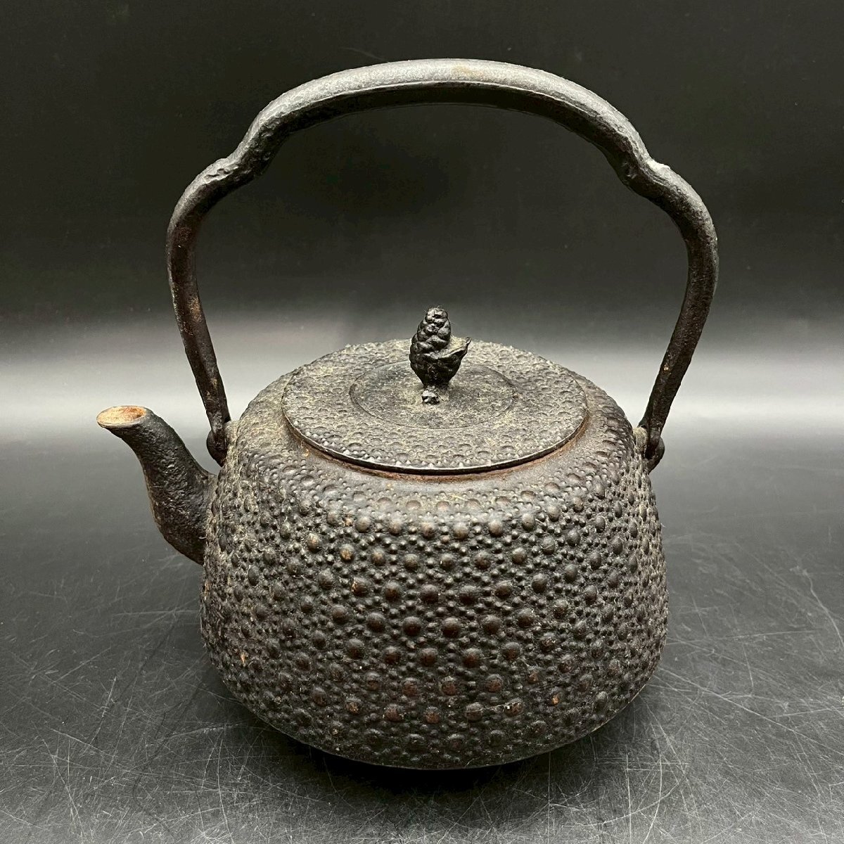 > OM0918-13‐3 鉄瓶 鉄器 鉄製 やかん 湯沸し あられ 急須 茶道具 茶器 茶道具 古道具 伝統 工芸 骨董品 高さ12㎝ 口径9.5㎝ 80サイズ