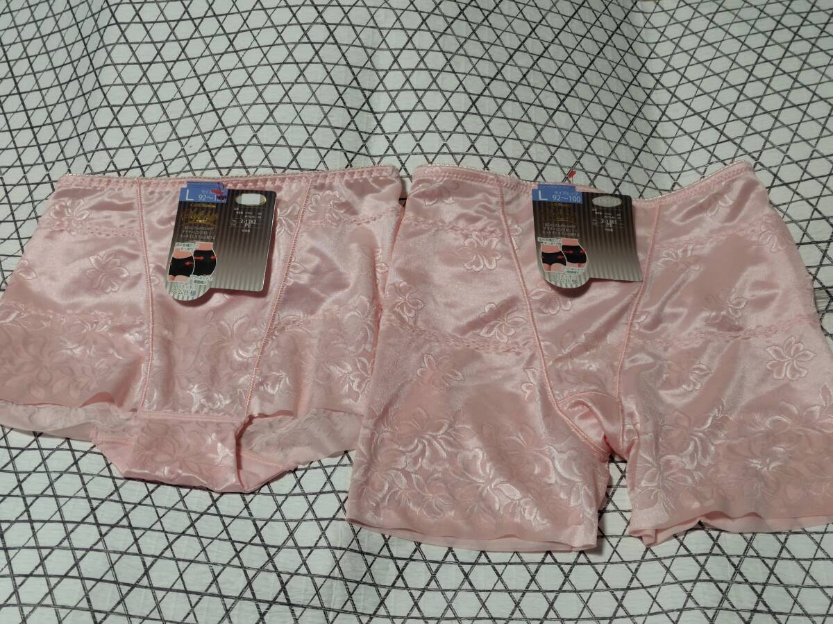 > レア*Cereb Beauty*骨盤補正*ガードル*2種類*1分丈*ピンク*新品タグ付*L*Lサイズ*パワーネット*レース*歪み補正*ヘム仕様*上品*花柄*素敵