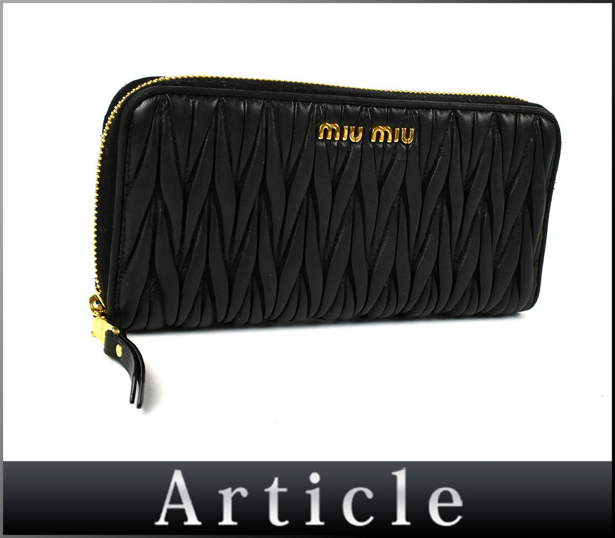 > 238693◇ MIUMIU ミュウミュウ マテラッセ ラウンドファスナー長財布 財布 レザー 革 ブラック ゴールド金具 レディース 箱付/ C