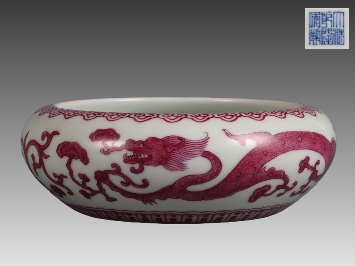 - ▽鴻▽清時代 陶磁器 臙脂紅彩赤龍紋水洗 清乾隆年製款 共箱 時代物 中国古美術 骨董品