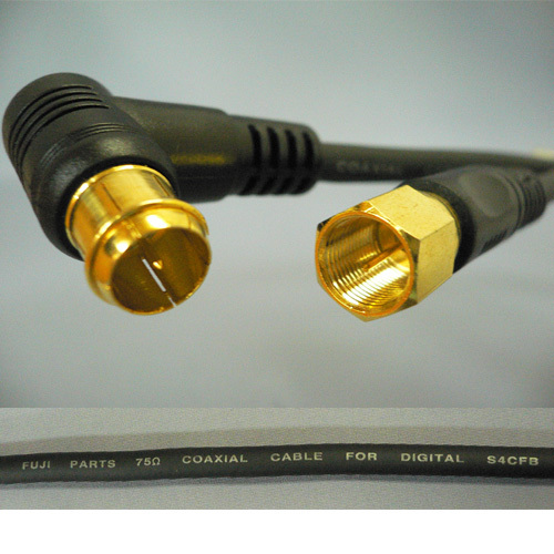 - 4K8K放送対応 地上デジタル テレビケーブルF型接栓 - L型プッシュ式プラグ 2m ブラック FBT-520
