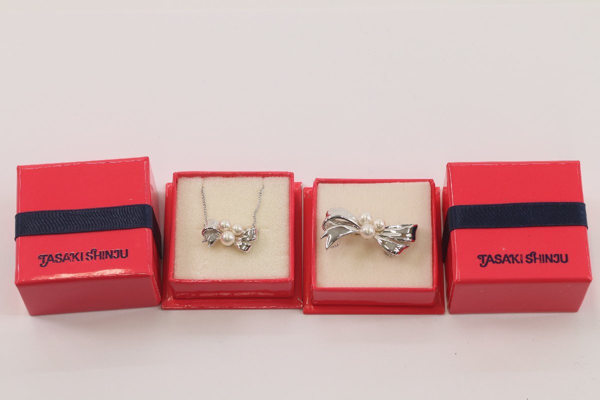 > 【2点】TASAKI タサキ 田崎真珠 パール 約4.7-5.5mm珠 ネックレス 約5.3-5.7mm珠 ブローチ シルバー レディース アクセサリー 3388-K