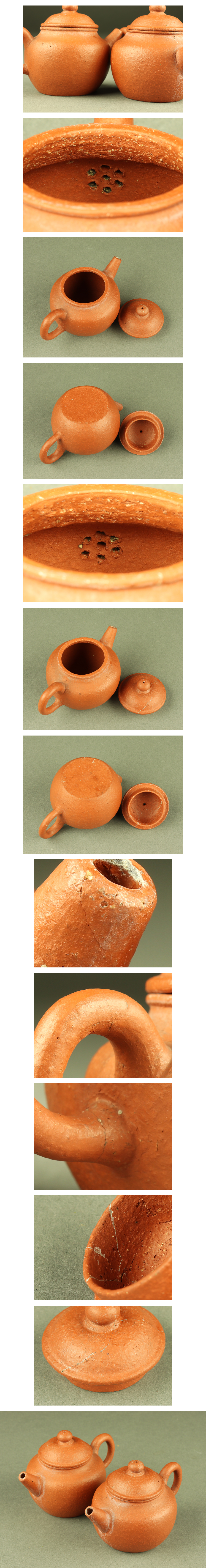 > 【宇】KA017 唐物 砲口 梨皮泥急須 朱泥急須 一対 多孔口 煎茶道具