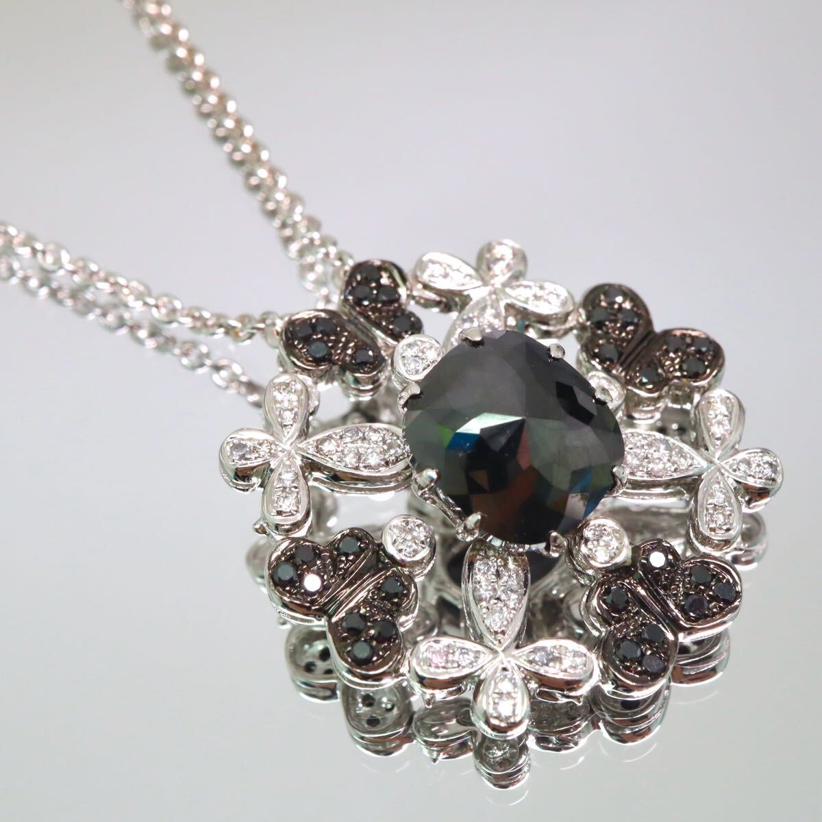 - K18WG!!0.55ct!!2way変形デザイン!!◆天然ブラックダイヤモンド/天然ダイヤモンドネックレス◆N 約12.1g 約34+4cm diamond FA9/FB0 M30