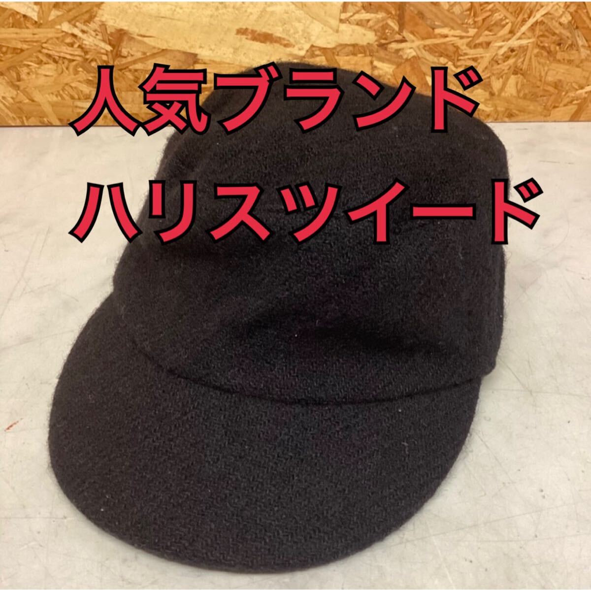 - ハリスツイード ウールキャップ ブラック 帽子(へ18)