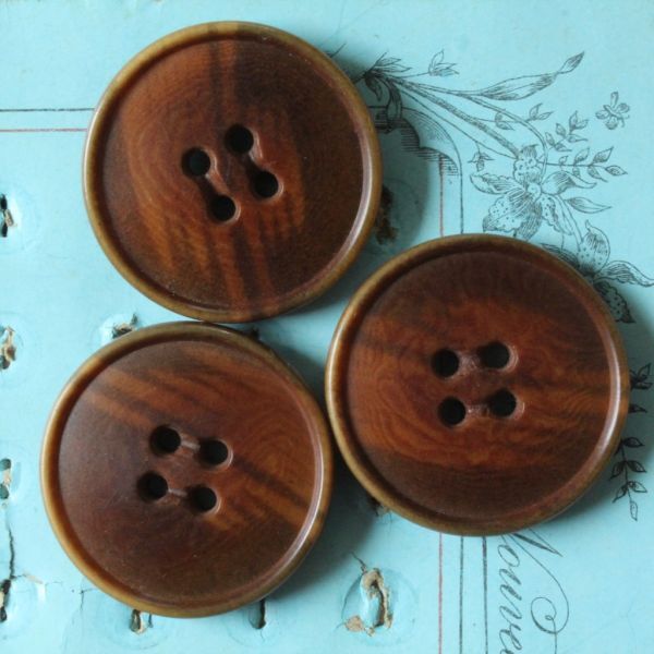 - 即決 ベジタブルアイボリーボタン 3個 φ30~31mm ブラウン 模様入り コロゾ 素材 ナット フランス ヴィンテージ