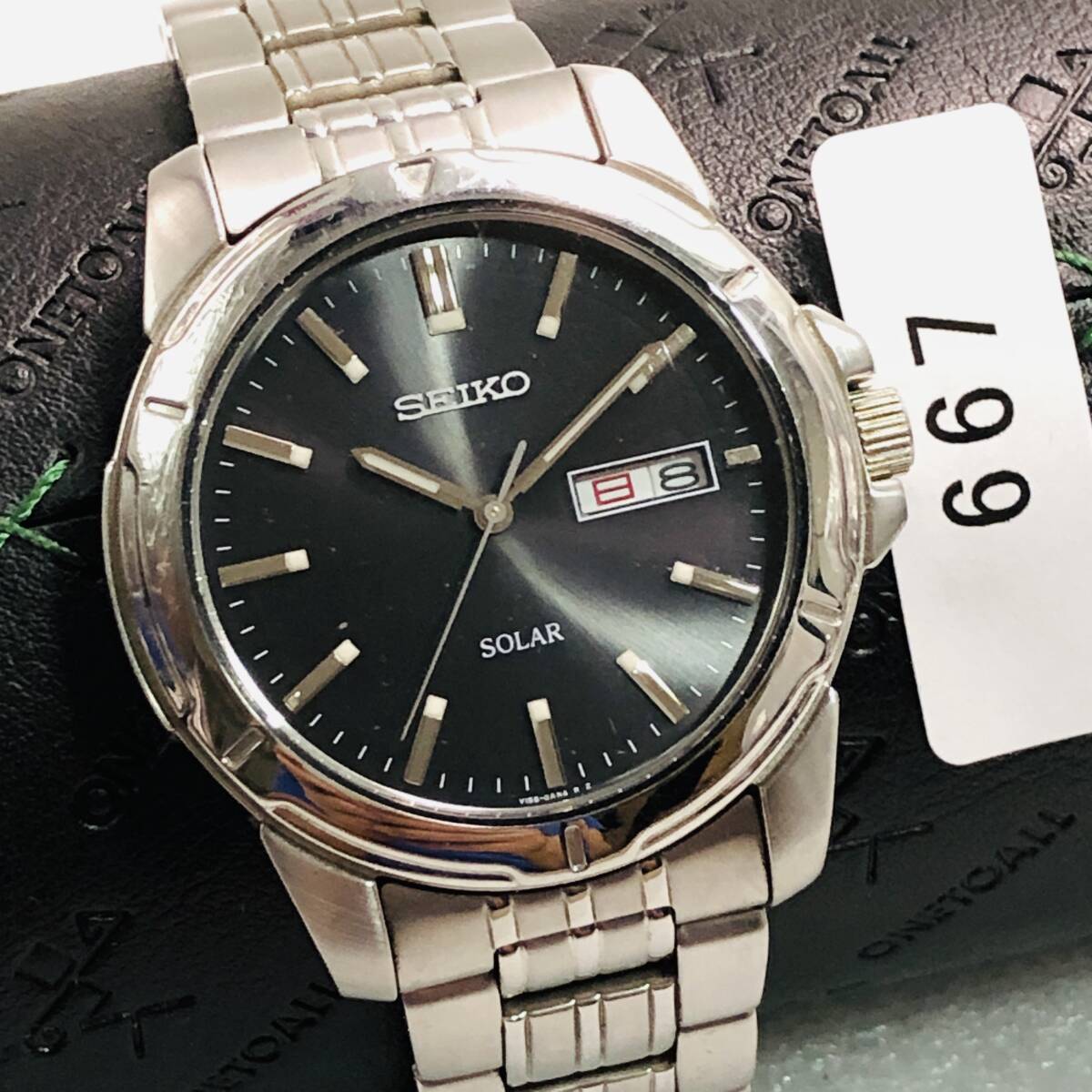- 腕時計 セイコー SEIKO SOLAR ソーラー V158-0AD0 デイデイト ラウンド ブラック文字盤 稼働 667