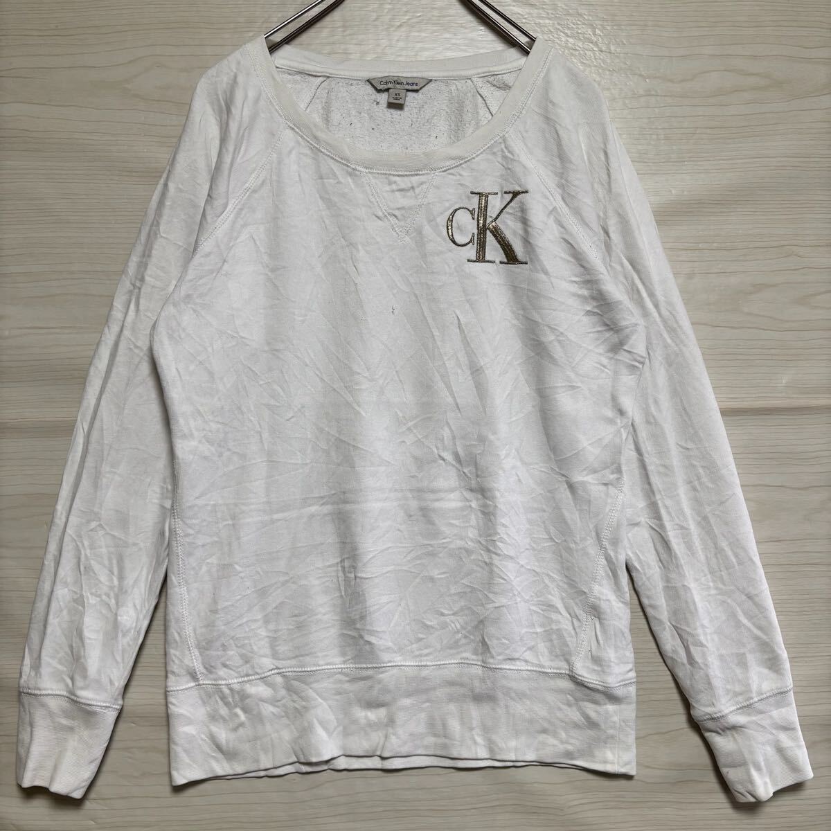 > Calvin Klein カルバンクライン スウェット トレーナー ラグランスリーブ サイズXS ホワイト 白 コットン レディース トップス(38)