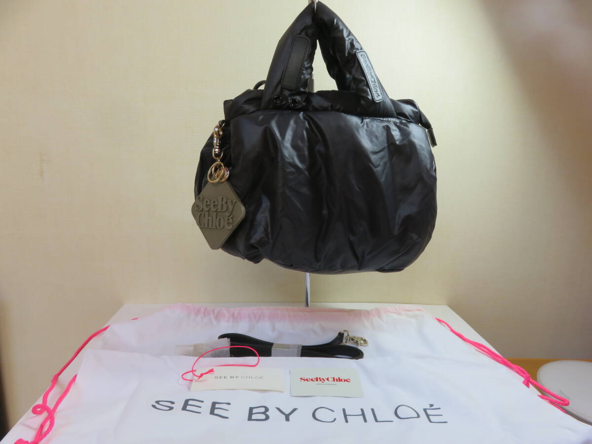 - ♪美品♪★SEE BY CHLOE★シーバイクロエ 2WAY トートバッグ ショルダーバッグ ロゴチャーム付き ブラック系
