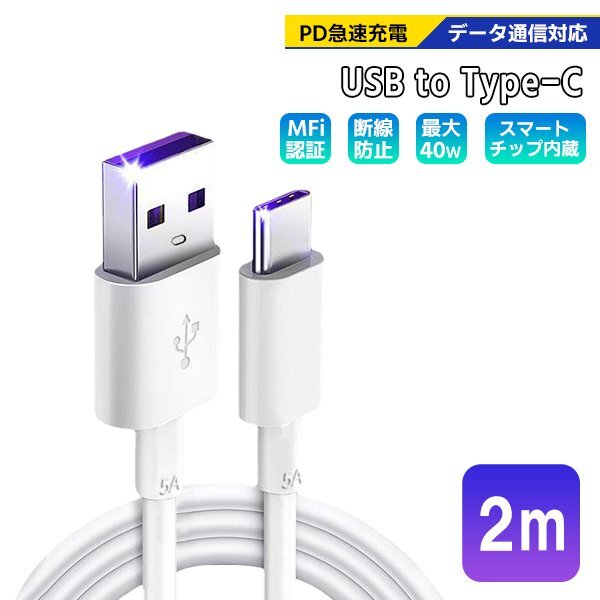- [7]USB Type-A to Type-C ケーブル 2m 1本 PD急速充電 データ転送対応 スマホ iPhone15 通信 充電コード 高速充電 ゲーム機 スイッチ 3.0