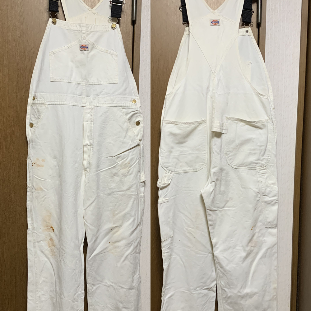 > W34【Dickies USA|オーバーオール】ディツキーズ オフホワイト系 つなぎ ワークウエア DIY 米国製