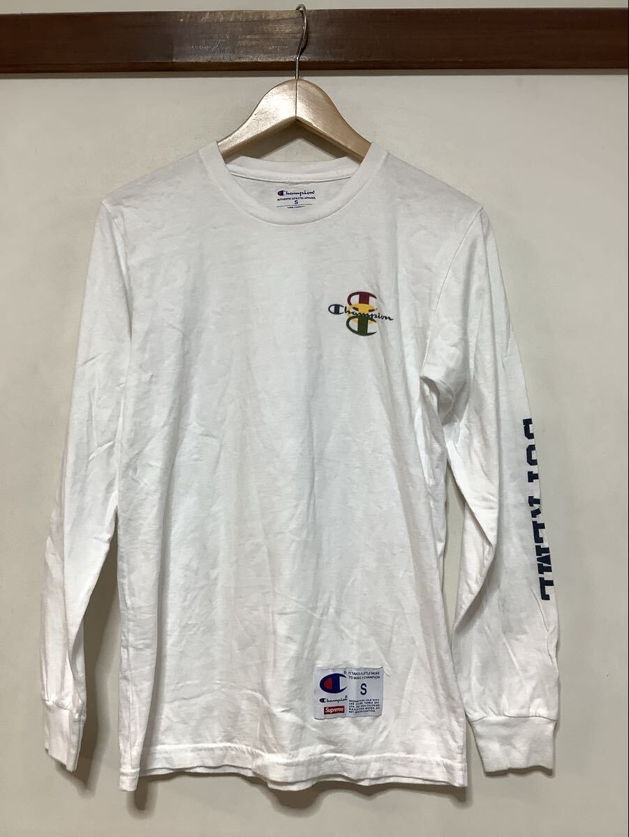 - た1725 Supreme Champion シュプリーム チャンピオン コラボ 17AW 長袖Tシャツ ロンT S ホワイト ストリート Stacked C L/S ストリート