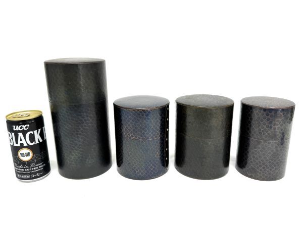 - 箱付 他 玉川堂 茶筒 大小4点まとめてセット 総重量1049g 銅製 人間国宝 無形文化財 茶道具