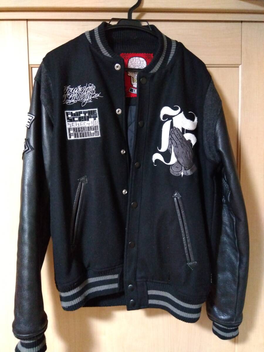 - 1円スタート スタジャン ジャケット レザー 黒 刺繍 ワッペン ドクロ ストリート系