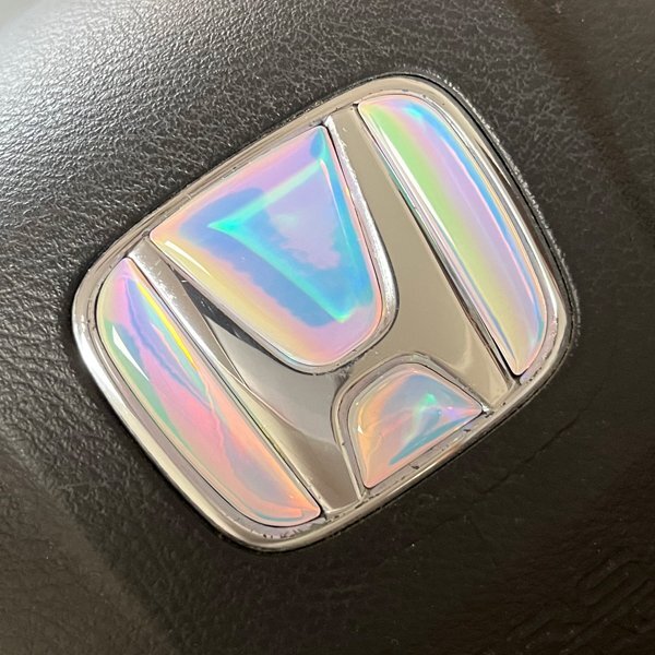 - ホンダ ステアリング エンブレムシート オーロラメッキホワイトパープル ハンドル用 SDH-H01 樹脂盛立体3D加工 ZEROWIN HONDA