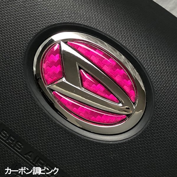> ダイハツ ステアリング エンブレムシート カーボン調ピンク ハンドル用 SDH-D01 樹脂盛立体3Dシール ZEROWIN 簡単取付 ドレスアップ
