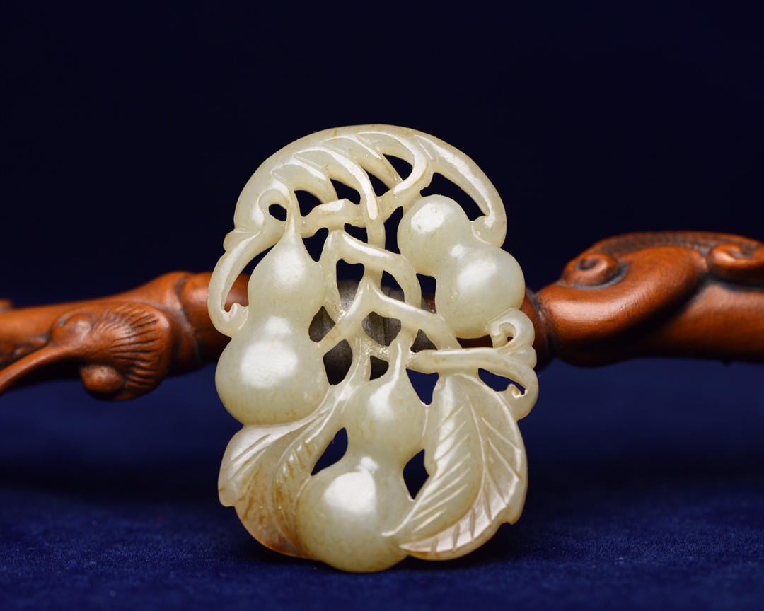 - 館蔵 和田玉彫 葫芦 吊墜 古董品 時代物 賞物 貴重 稀少珍品 中国古美術 古美味 蔵出