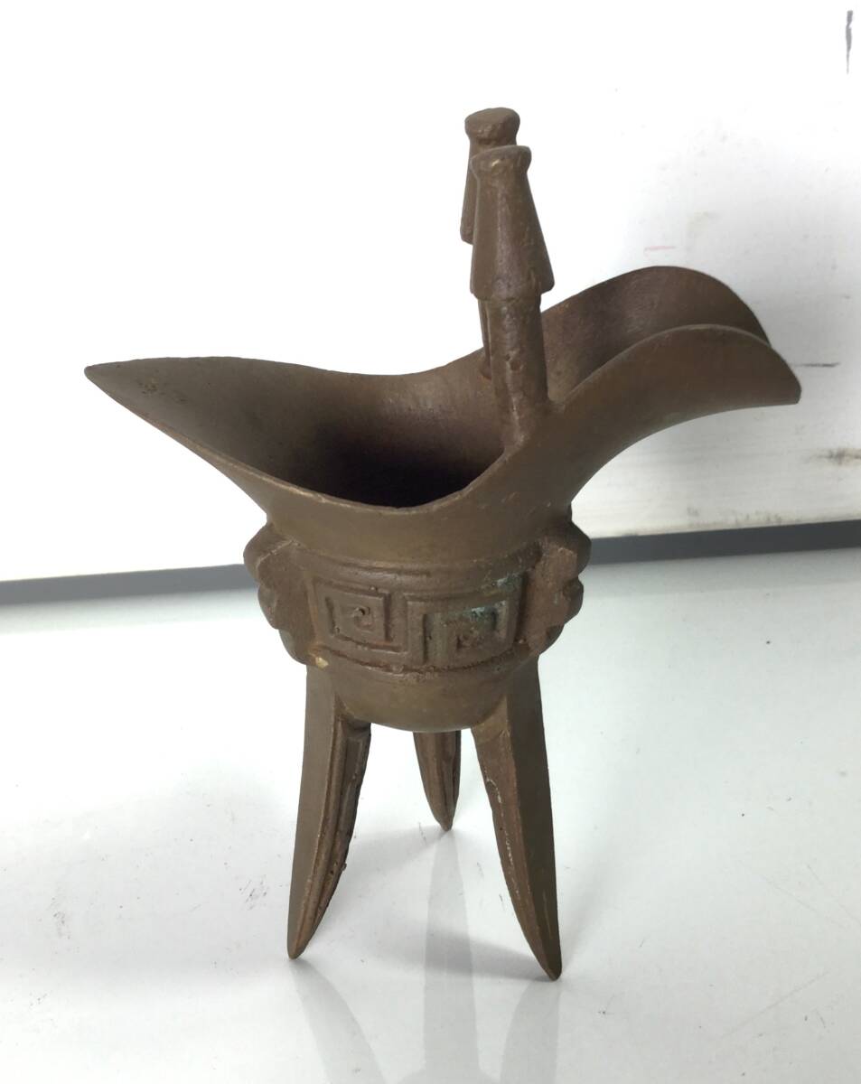 - 銅製 爵 片耳 三つ足 酒器 中国貿易 中国古玩 ※中古品