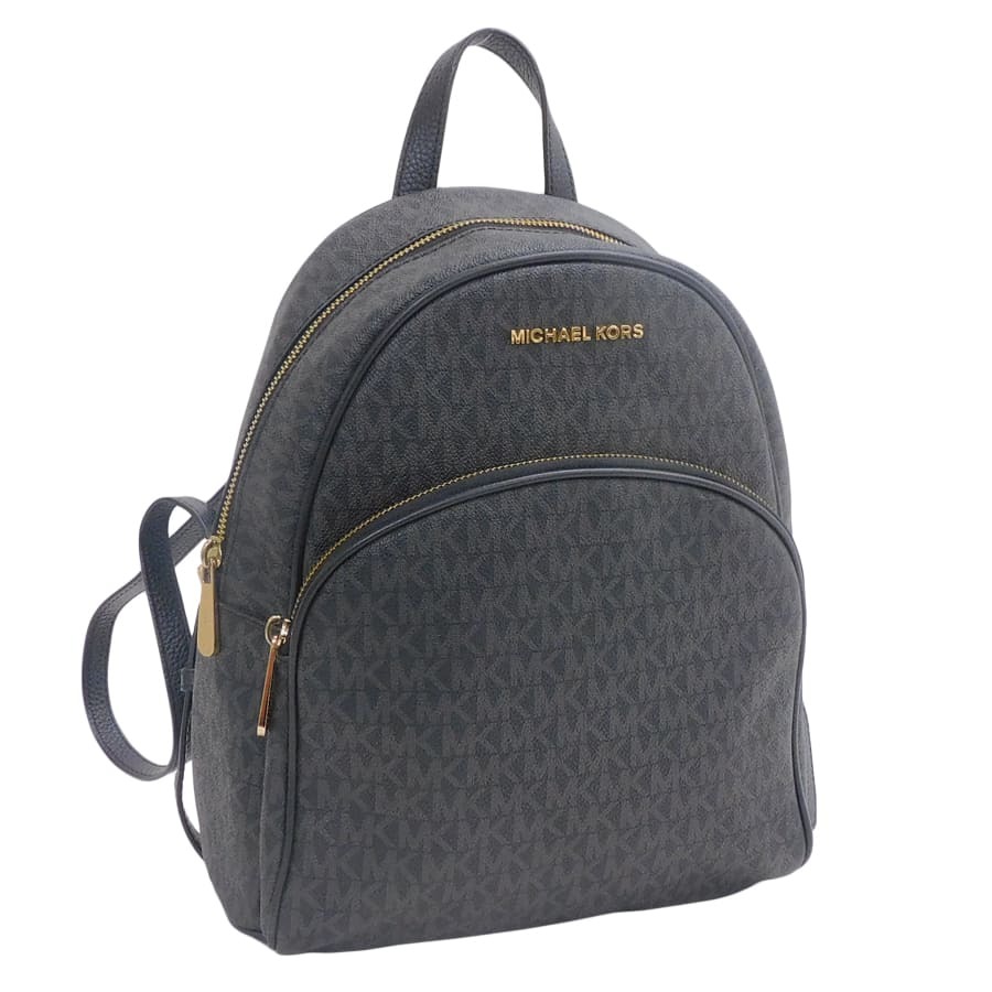 - 1円■極美品 マイケルコース リュック ロゴマニア 総柄 ブラック系×グレー系 PVC×レザー MICHAEL KORS■ E.Bii.pS-06