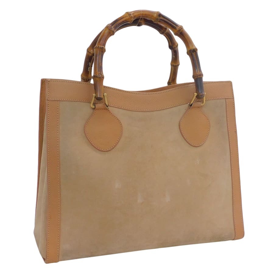 > 1円■グッチ ハンドバッグ ベージュ系 スエード×レザー バンブーライン シンプル レディース GUCCI ■E.Bus.tI-08