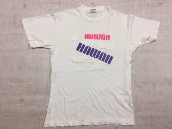 > 80s Caribbean Dream サーフ ハワイ HAWAII ホノルル HONOLULU WAIKIKI 発泡プリント スーベニア 半袖Tシャツ メンズ L 白