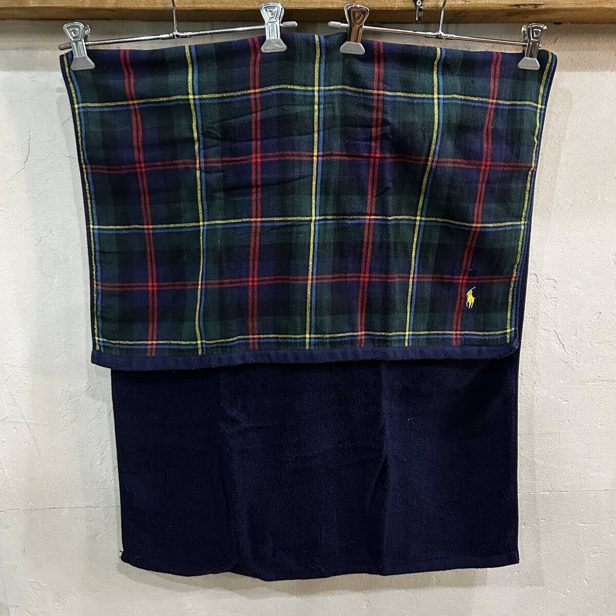 > Ralph Lauren / ラルフローレン ハーフケット タータンチェック ポニー刺繍 縦124CM横63CM 膝掛け コットン100% USED