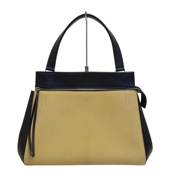 - セリーヌ CELINE ハンドバッグ 172613QEC.01VA エッジミディアム レザー ベージュ×黒 ワンハンドル/バイカラー バッグ