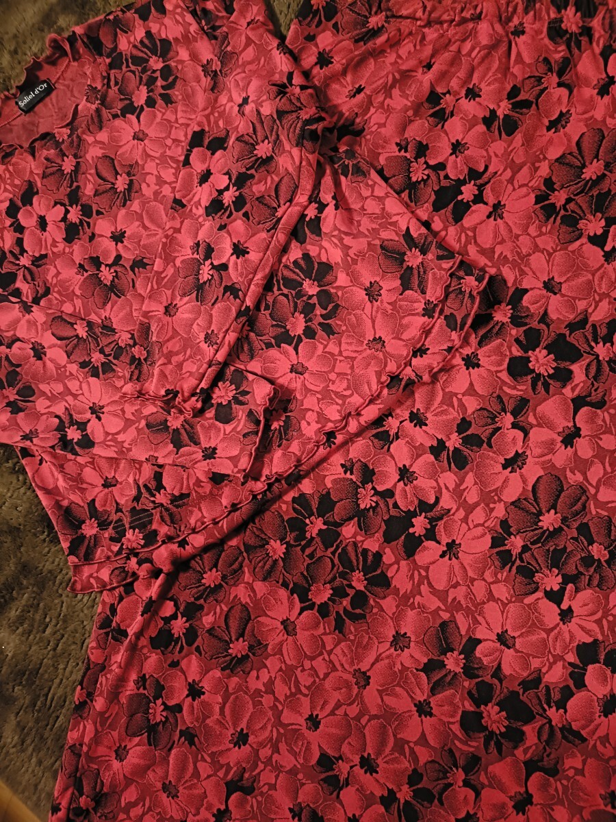 - 花柄 レトロセットアップ 赤黒 トップス スカート