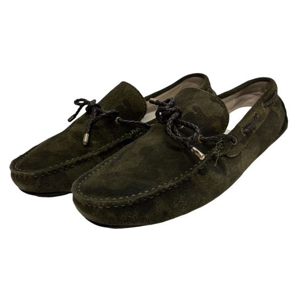 - J374 ABAHOUSE アバハウス メンズ デッキシューズ ローファー 44 約 28cm グリーン 迷彩柄 スエード