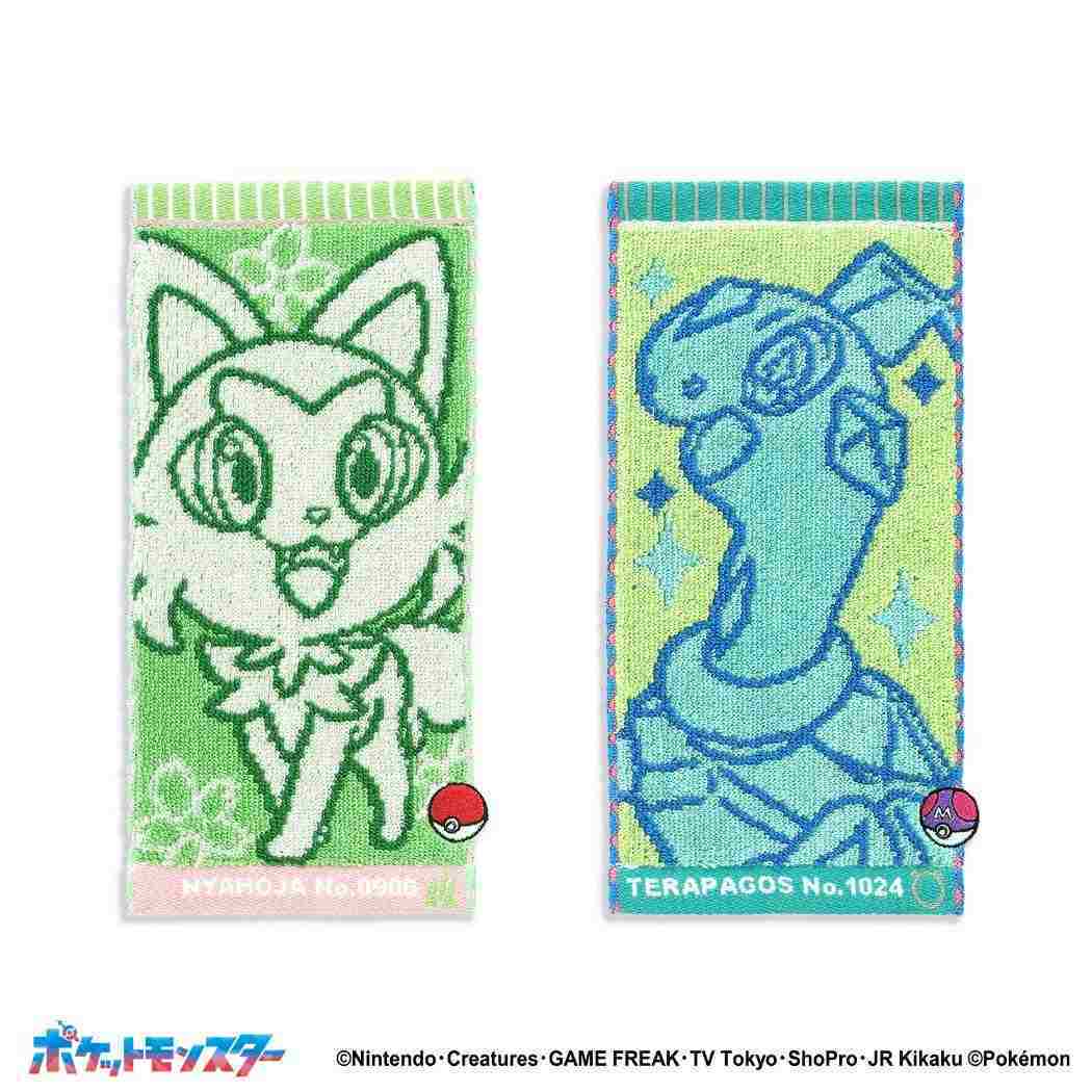 - ポケットモンスター ハンドタオル フルフィーコットン ハーフタオルハンカチ2枚入セット ナンバリング ペア [ニャオハ&テラパゴス
