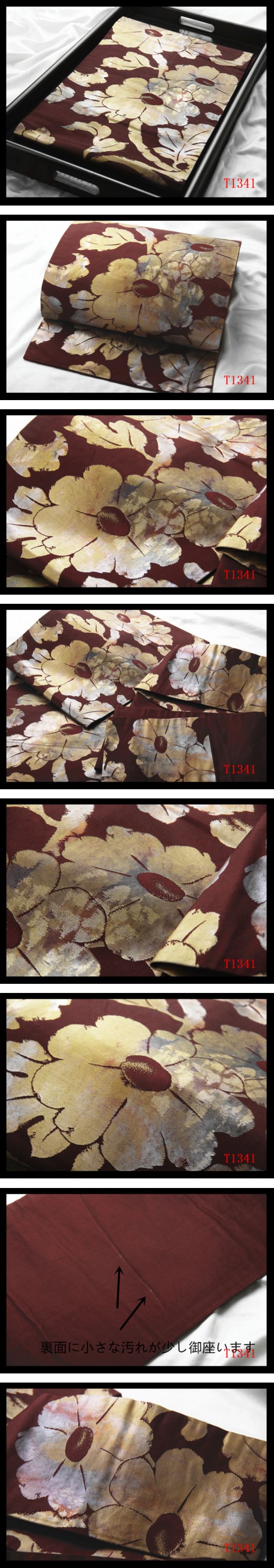 - 蔵【T1341】厳選美品 唐草花紋 葡萄茶色地 気品豊かに 正絹純金糸高級美術名古屋帯 ◇検簪着物袋帯和装小物帯締め