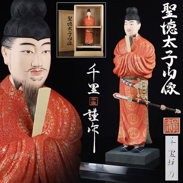 - 魁◆超絶技巧 名作 本物保証 平野千里 本人作 特大大作品「聖徳太子御像」色彩 木彫像 名仏師 共箱 師:平櫛田中 父:平野富山 超名作金彩像
