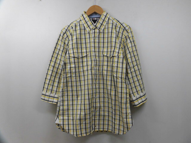 - TOMMY HILFIGER トミーヒルフィガー チェックシャツ 胸ポケット 7分袖シャツ トップス ワンポイント刺繍 ホワイト×イエロー 白 黄 Lサイズ