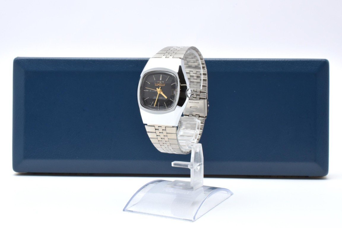 > TIMELY DELUXE タイムリー デラックス 腕時計 メンズ 手巻き メタルバンド シルバー ブラック文字盤 デイト 3針 箱付き