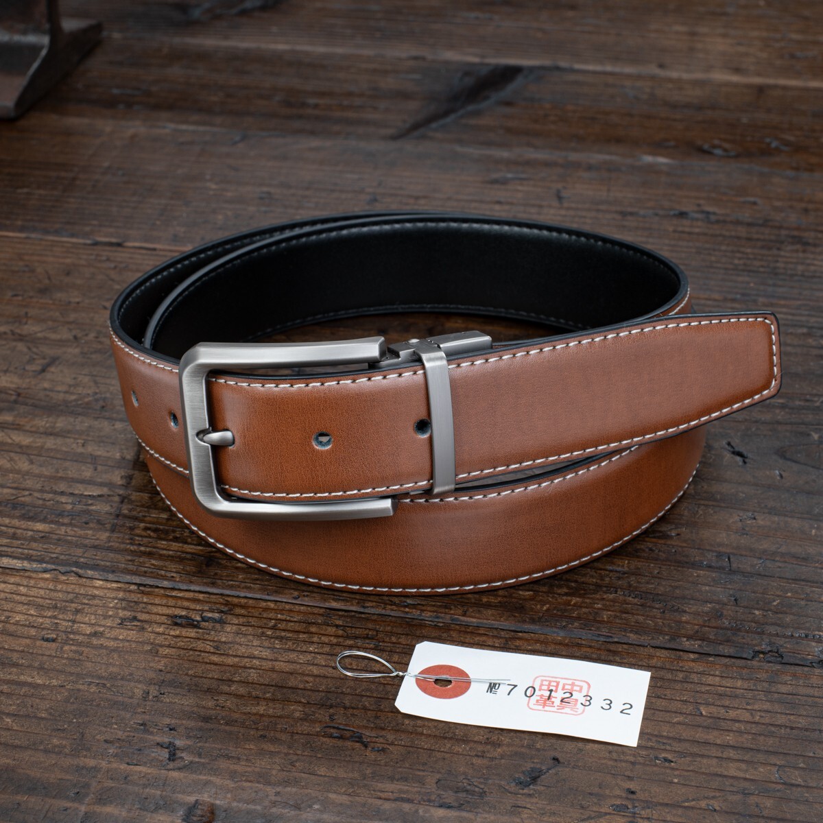 - リバーシブル【本革】イタリアンレザー ステンレスバックル メンズ ベルト ビジネス カジュアル 新品 未使用 送料無料 1円 茶 黒 田中革具