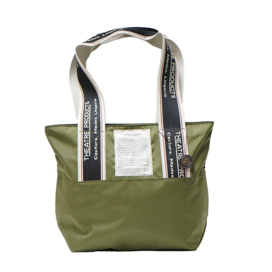 THEATRE PRODUCTS(シアタープロダクツ)NYLON TOTE “MISSISSIPPI” -M-トートバッグ M商品番号:BL230335耐久性に優れ、上品な光沢感のあるナイロン素材を使用したジャガードテープバッグ。タウンユースからカジュアルなアウトドアまで活躍するアイテムです。前面に配置されたマニフェストラベルが全体のバランスを整えます。