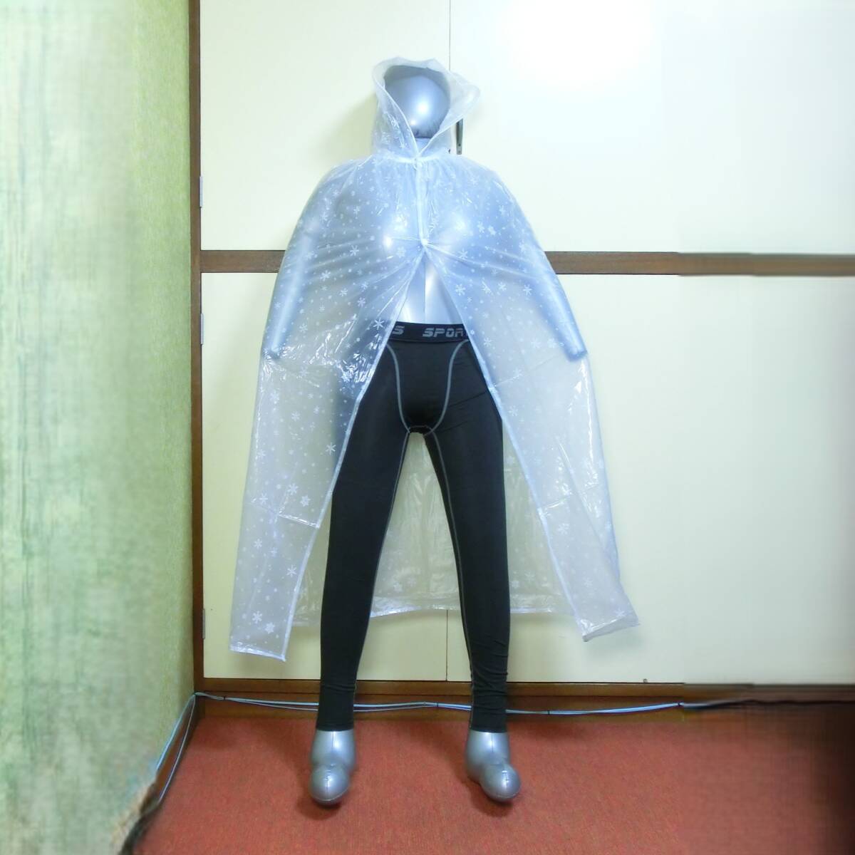- (A5)ビニール PVC レインケープ レインポンチョ レインコート 合羽 雨具以外にもコスプレ等ににいかがですか? 光沢 つるつる素材 ロング