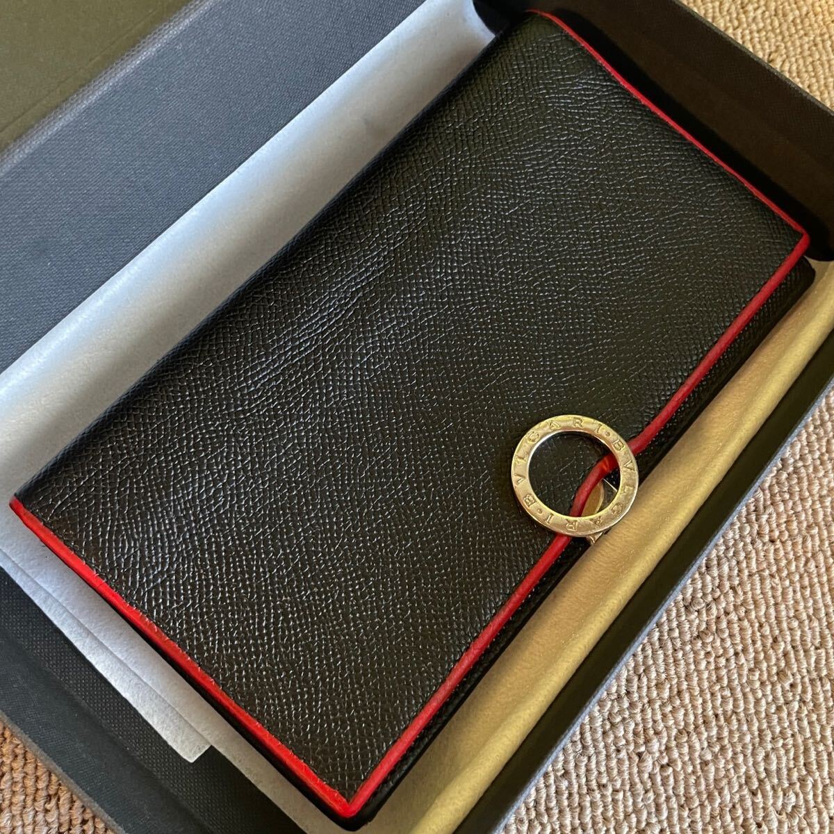 - 一円 美品 BVLGARI ブルガリ ロングウォレット 二つ折り ビーゼロ 長財布 ブラック ロゴマニア 財布 黒 赤