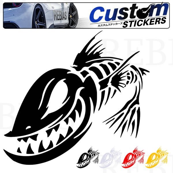 - 送料無料 マッドフィッシュ ステッカー 【ブラック】 魚 凶暴 釣り 魚 海釣り 川釣り 夜釣り バイク